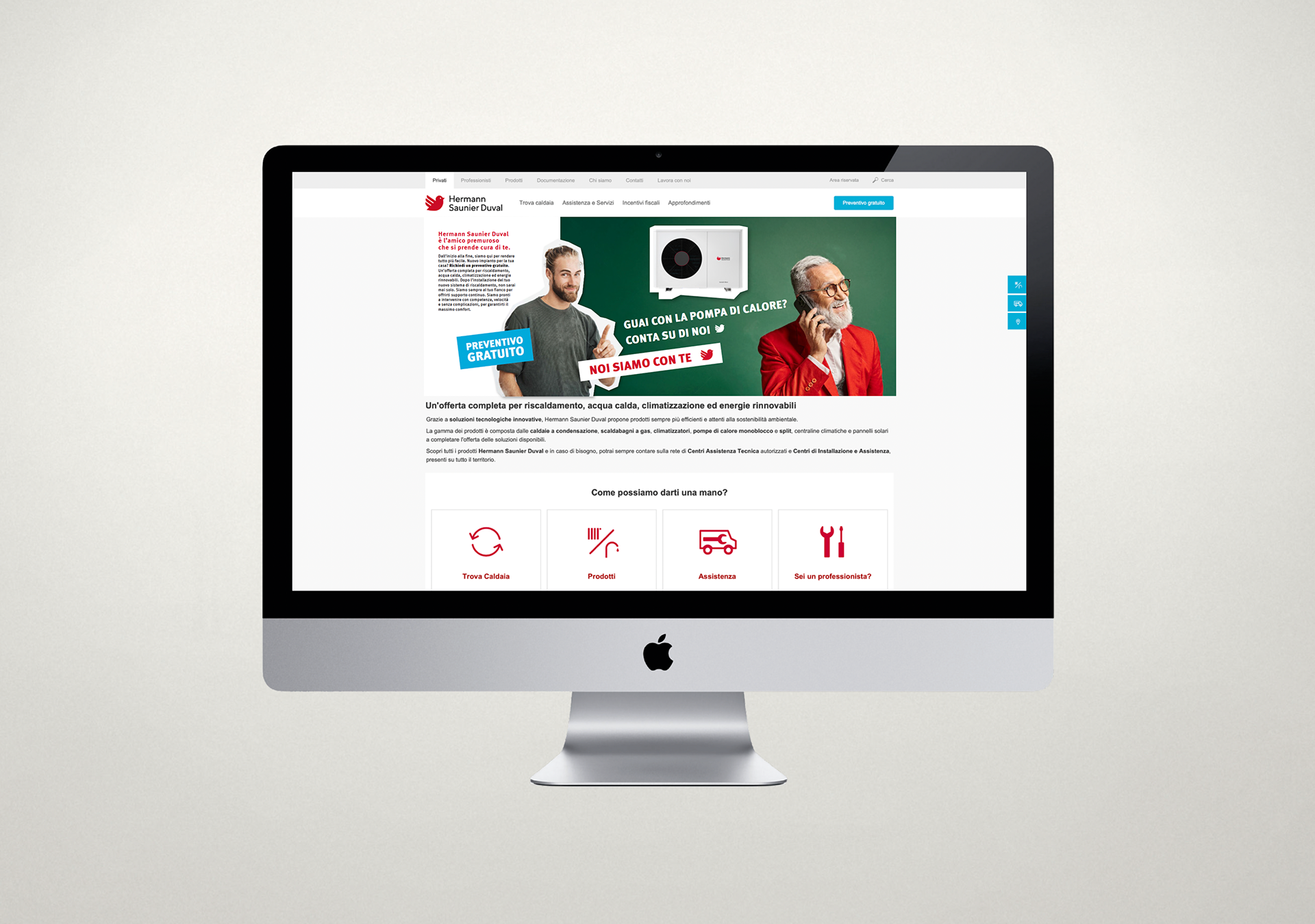 Hermann Saunier Duval si occupa di fornire acqua calda sanitaria e garantire il clima ideale in ogni ambiente. Da sempre è in grado di offrire la giusta soluzione a qualunque esigenza, con l’obiettivo di semplificare la vita, sviluppando prodotti efficienti, di alta qualità, affidabili e durevoli nel tempo. Con una rete capillare di assistenza in tutta Italia, Hermann Saunier Duval è in grado di supportare i clienti nella scelta e nell’installazione degli impianti, fino alla manutenzione. Essere accanto ai clienti, soddisfare i loro bisogni e preservare le risorse del pianeta sono i valori che guidano ogni giorno Hermann Saunier Duval.